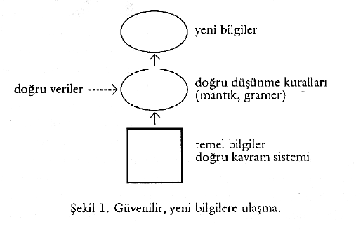 Gerek felsefî gerekse nazarî (teorik) konularda düşünürken doğru sonuçlara ulaşabilmek için her şeyden önce doğru bir kavram sistemine ihtiyaç vardır. Buna ilaveten bu kavram sistemi içinde ifade edilmiş olan güvenilir bir bilgi temeline gerek vardır. Doğru düşünme kuralları bizi ancak doğru kavramlarla ifade edilmiş bilgi ve veriler üzerine uygulandığında doğru sonuçlara ulaştırabilir. Şekil 1 bu söylediklerimizi özetlemektedir.
